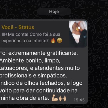 A maior oportunidade de transformar sua estética com arte na pele chega em 13/11 — tatuagens autorais, traços únicos e artistas premiados. Tudo o que você precisa para eternizar sua história com exclusividade e sofisticação, em uma condição única. O Infinete Art, referência em São Paulo, já transformou a estética de inúmeras pessoas. Aproveite a oferta exclusiva disponível apenas no dia 13/11. Cadastre-se e garanta sua vaga!